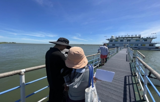 最后,Michael与红网拍摄团队一行来到岳阳江豚湾观测站,实地探访长江流域极危物种江豚的栖息地,并与长期在此开展保护工作的科研团队交流互动。