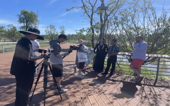 校园网讯 7月2日上午,为深入贯彻习近平文化思想,助力文化事业高质量发展与传承创新,省委宣传部湖南国际传播中心计划拍摄“习近平文化思想在湖南的实践”外宣作品,其中关于《“守护好一江碧水"的湖南答卷》篇章由湖南红网国传中心负责拍摄,外语学院跨文化团队外籍专家Michael出镜,团队成员许云天全程负责转译统筹与行程协调。