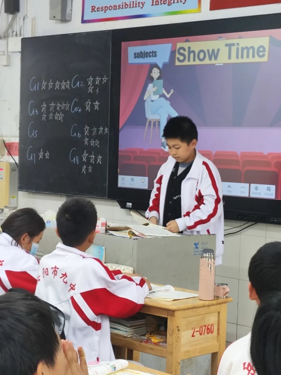 尤为亮眼的是,本节课创新采用积分制管理模式调动学生积极性。吴雨涵老师将课堂表现细化为“主动发言”“听力准确”“对话流畅”“小组协作”等多个评分维度,对学生的每一次积极参与即时给予积分奖励。积分板上不断跳动的数字点燃了学生的参与热情,原本略显沉默的课堂变得踊跃活跃——小组讨论时各抒己见,展示环节争相举手,纠错时刻积极补充,课堂氛围热烈而有序,真正实现了从教师“独角戏”到师生“协奏曲”的转变。