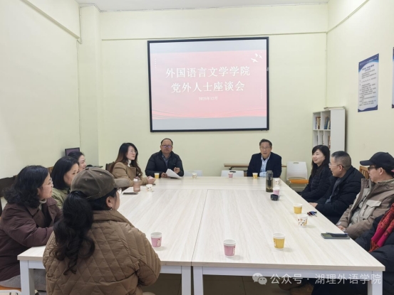 校园网讯 12月30日下午,外国语言文学学院在8110教室召开党外人士座谈会,学院党外人士代表齐聚一堂,为学院发展建言献策。