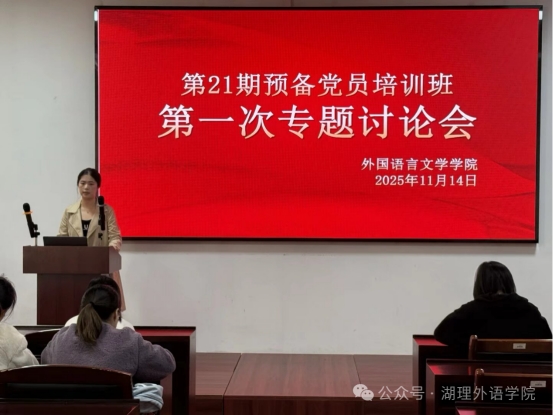 校园网讯 11月14日中午,外国语言文学学院第二十一期预备党员培训班第一次专题讨论会在8108教室顺利举行。本次讨论会以"深入学习贯彻习近平新时代中国特色社会主义思想"为主题,全体预备党员围绕这一重要思想的科学体系和实践要求展开深入学习和研讨。