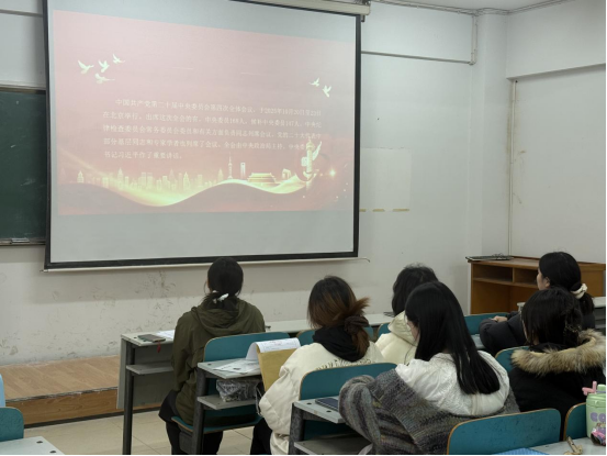校园网讯 11月18日中午,外语学院学生党支部分别于8401、8402教室召开“深入学习贯彻党的二十届四中全会精神”专题理论学习会。活动由学生第二党支部书记丁心奕、宣传委员易晓蕾主持,全体学生党员参与。