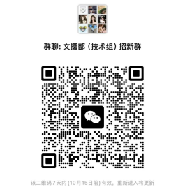 亲爱的学弟学妹们,大家好~在这个充满创意与激情的新学期,青媒文摄部(技术组)正式开始招新,热烈欢迎各位对拍照充满热情的伙伴加入我们的团队。如果你擅长用相机捕捉生活的点滴、用审美创意打造视觉盛宴,渴望提升拍照技能并积累实践经验。那就抓住现在,加入我们,成为外院青媒文摄部(技术组)闪耀的“技术达人”吧!