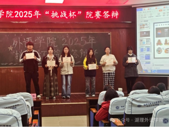 校园网讯 11 月 10 日晚上 为搭建跨学科创新实践平台,点燃青年学子探索热 情,将外语专业优势与社会需求深度结合,11 月 10 日晚上,外语学院 2025 年 “挑战杯”院级答辩在 6T1 教室顺利举办。本次答辩邀请到谢红秀、杨柳、曹晴三位经验丰富的教师担任评审,各参赛团队代表、师生观摩团共同参与这场思想盛宴。
