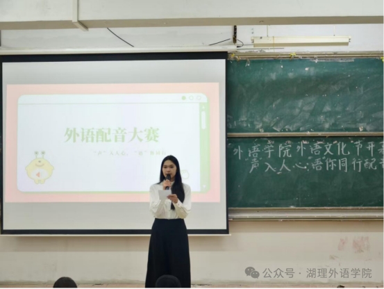 校园网讯 11月28日晚,外语学院“声入人心,语你同行”外语配音大赛在8T1教室成功举办,由杨柳、朴美玉老师担任评委,外语学院2025级全体学生参加。本次活动是外语文化节的重要环节,旨在营造"爱说外语、善用外语"的学院氛围,提升学生外语表达与跨文化交际能力。