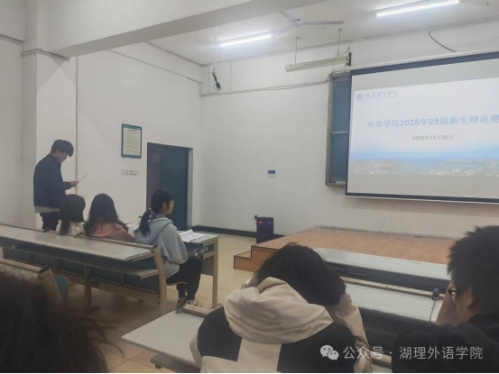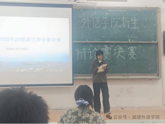 校园网讯 11月30日下午,外语学院于8T1内举办新生辩论赛决赛。英语25-1BS和英语25-2BS班作为在上一轮比赛中获胜的班级共同参与本场比赛,决一胜负。外语学院2025级各班学生前往现场观看比赛。