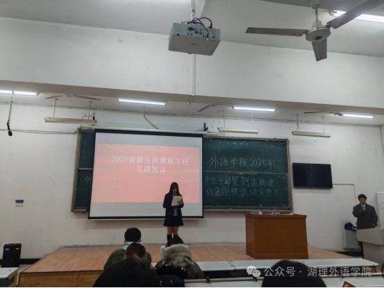 此次颁奖典礼中,2025级新生助理班主任代表吴涛发言,她深情讲述了助班们在外语学院的坚守与付出,用心陪伴新生适应大学生活,悉心指引学业成长,耐心解答各类困惑,用责任与热忱为新生们保驾护航,以实际行动诠释了外语学子的担当与温暖,也表达了对学院与新生们的美好期许。