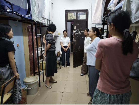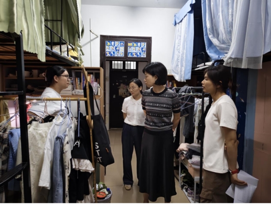 在走访过程中,老师们与外院学子进行了亲切交流,详细地询问了大家新学期的学习计划与生活安排,鼓励学子们迅速调整状态,合理规划时间,明确学习目标。同时,老师们也检查了寝室安全与卫生状况,仔细查看了门窗、电路等是否完好,提醒同学们提高安全防范意识,杜绝违规使用大功率电器、私拉乱接电线等行为,确保住宿安全。针对物品摆放和卫生细节等问题,老师们也现场提出了建议,嘱咐学子们养成良好生活习惯,共同维护整洁舒适的寝室环境。