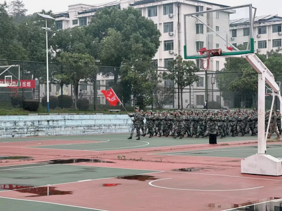 队列训练中,他们身姿如松,目光如炬,教官一声令下,转身、摆臂皆精准,纪律意识已融入血脉;正步操练时,踢腿带风,落地有声,雨水打湿迷彩,却浇不灭他们的斗志,动作依旧刚劲,尽显外院学子的坚韧;方阵行进间,红旗引路,队伍如一人,脚步声铿锵,口号声震天,鲜活诠释了外院人的精神风貌。
