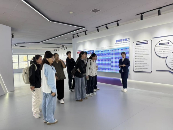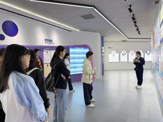 讲解员细致讲解办学成果