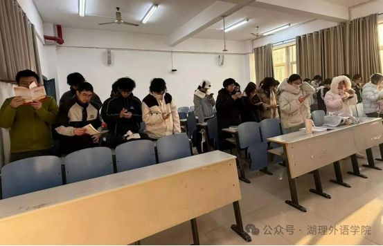 课前的三分钟,同学们用青春的声音,向时代发出最坚定的回答。他们的诵读如战鼓催征,呐喊着“强国有我”的誓言;又似春风化雨,滋润着每一寸深爱的土地。每一个眼神都闪耀着坚定的光芒,每一个手势都传递着青春的力量。这是新时代青年最动人的告白,这是莘莘学子最深情的献礼。