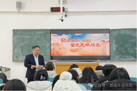 立足历史,关照现实。课程最后,杨烈祥对在座的外语学子提出了殷切期望。他强调,作为身处新时代、面向全球的外语人才,学习这段历史具有特殊而重要的意义。一要知史明志,通过对苦难辉煌历史的深入了解,真正理解今日中国和平与发展环境的来之不易,从而坚定理想信念,筑牢信仰之基。二要知史担责,要自觉将外语专业能力与国家发展需求相结合,在向世界讲述中国故事、传播中国声音时,必须具备深沉的历史底蕴和鲜明的国家立场。三要知史奋进,要将从抗战历史中汲取的精神力量,转化为刻苦学习、锤炼本领的实际行动,立志成为兼具家国情怀与国际视野的卓越人才,为强国建设、民族复兴贡献属于自己的智慧与力量。