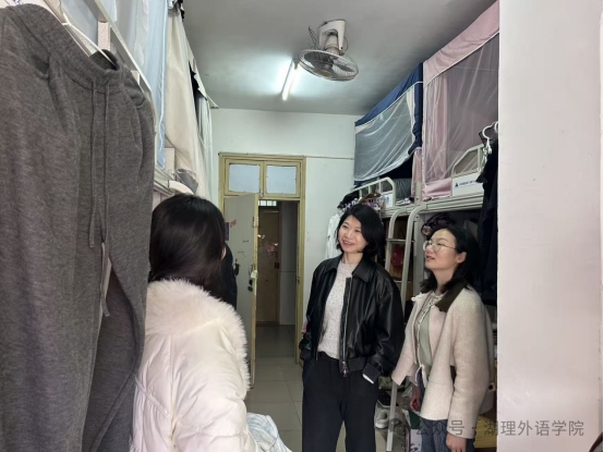 走访期间,领导老师们每到一间宿舍,都与外语学子亲切攀谈,详细询问大家的假期生活、新学期学业规划及生活适应情况,细致了解宿舍基础设施使用、卫生状况等实际问题。针对同学们提出的学习资源获取、生活服务保障等诉求,符婷副书记耐心倾听、逐一回应,叮嘱大家尽快调整作息状态,快速融入新学期的学习节奏。同时,领导老师们重点对宿舍内违规电器使用、消防设施、门窗锁具等安全隐患进行全面排查,反复强调安全无小事,要求同学们增强安全防范意识,规范用电行为,妥善保管个人财物,杜绝安全事故发生,共同维护安全、整洁、和谐的宿舍环境。