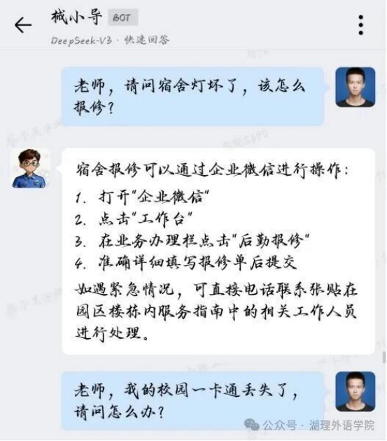 未来,湖南理工学院还将不断完善“械小导”的语料库,让他能听得更懂、答得更准,也更贴近学生的真实需求。他不喧哗、不张扬,却像一盏灯,在学生的每一次提问背后,悄悄发着暖光。