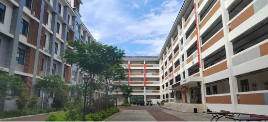学校占地面积约88亩,总建筑面积达53312.72㎡。学校共有两栋教学楼、 1 栋教学办公综合楼,各功能室配备齐全;1 栋三层食堂风雨球场,1 栋共200间宿舍的学生公寓楼,1 栋共162个单间的教师周转房,建有地下停车场共180个停车位,为教师和学子提供了良好的工作、学习和生活环境。