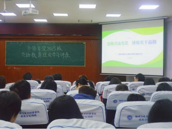校园网讯 10月24日上午,为有效培养学生正确的劳动价值观。外语学院劳动教育理论学习讲座在六栋学术报告厅举行。本次活动由外语学院2025级辅导员周伟芳主持,2025级全体学生参加。