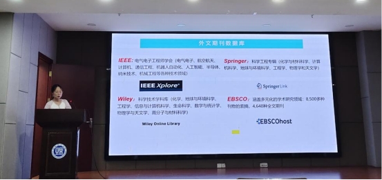 活动伊始,老师首先向顺利考入我校的研究生新生们表达了热烈祝贺与诚挚欢迎。随后,老师对图书馆概况进行了详细的介绍,包括图书馆的规模、设施、开放时间等。在资源分布板块,主持人详细讲解了纸本资源的楼层布局以及介绍了图书检索途径。对于学位论文这一重要学术资源,具有数据图表详尽、参考文献丰富、含文献综述的特点,可用于科学研究开题前的文献调研、获取课题研究综述及参考文献、追踪学科发展和研究过程,为研究生学术写作提供了重要参考。