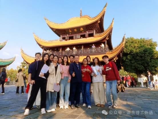 校园网讯 11月4日下午,在《岳阳楼记》诞生979年之际,湖南理工学院外语学院翻译硕士生导师、岳阳市翻译工作者协会会长毛新耕副教授带领翻译硕士2024级、2025级全体学生步入岳阳楼双公祠,登临岳阳楼。