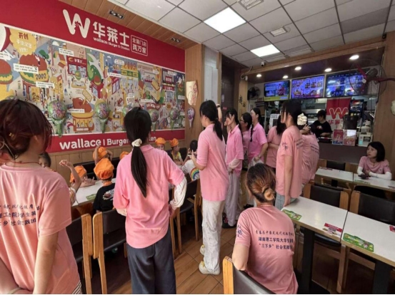校园网讯 6月30日,外语学院“碧水润星梦”Present志愿者团队成员张楷婕带领邓新玉等志愿者前往岳阳市残联爱弥尔自闭症儿童训练活动中心为自闭症儿童提供帮助。通过陪伴小朋友,辅助小朋友进行实践活动,如小游戏、手工制作与汉堡DIY体验,在欢声笑语中帮助疗愈自闭症儿童。