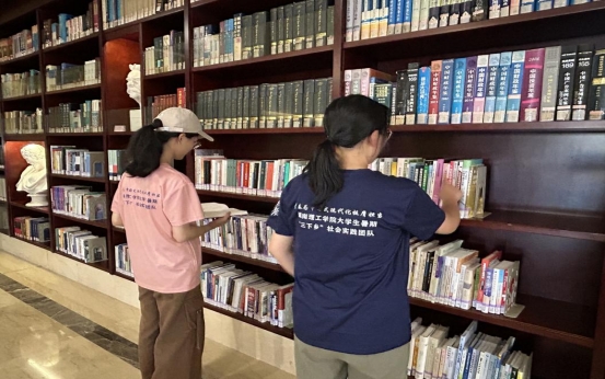 在对实地考察素材逐一归档后,团队成员们开始研读在张谷英村搜集的纸质资料,同步核对《张氏族谱》孝文化记载与建筑匾额、楹联、木雕等实物素材,确保资料的准确性与完整性。为深化对古村落精神内核的理解,团队成员分组进驻校图书馆,检索文献。