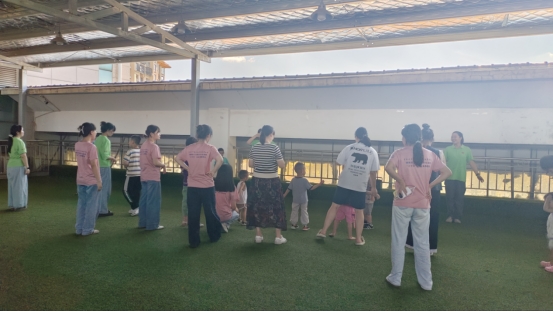 在志愿者和家长们的陪伴下,孩子们来到户外活动区,通过触觉、视觉、听觉多感官体验自然。大家一起感受微风的轻抚,聆听鸟儿的鸣叫。简单的互动游戏不仅锻炼了孩子们的肢体协调能力,更让他们在自然环境中获得放松与快乐。