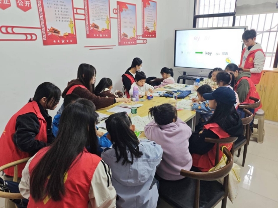 不同于传统课堂,本次公益英语授课以“实用化、趣味化、个性化”为核心,志愿者们化身“金牌教师”,用生动易懂的表达打破语言学习的壁垒,通过“发音模仿秀”等多种互动形式,帮助小朋友们夯实语言基础。课堂上,志愿者们耐心讲解、循循善诱,学生们认真听讲、积极互动。