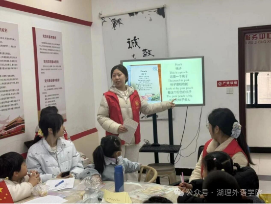 活动紧扣育人目标,志愿者们发挥外语专业特色,打造“党建+趣味教学”新模式。无论是“找粉色桃子”的生动互动,还是“看图画猜单词”的知识竞赛,都巧妙地将文化浸润与语言学习融为一体。志愿者们以饱满的热情和亲切的态度,不仅教会了孩子们知识,更用党员的优良作风为他们树立榜样,真正实现了“党心育童心”的良好教育效果。